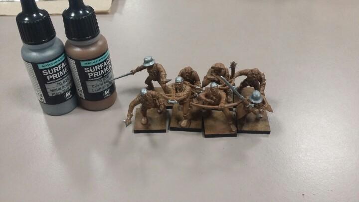 I had an old spree for eight figures. I used +vallejocolors vallejo color primers, leather brown and plate mail metal and then a few washes and some basing and they were good to go. Bonus that since they were plastic, they were unlikely to be damaged and would reduce the amount of weight I was carrying.